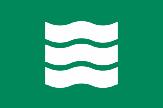 The flag of the Naka ward of the Hiroshima City is green with mark.