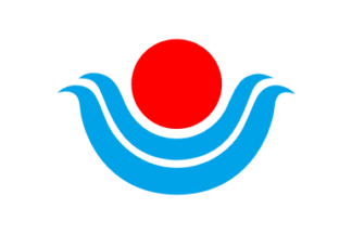 The flag of former town of Yuiki was green with mark. The town is now, from
