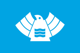 The light blue flag has a light blue and a blue two color symbol mark in the
