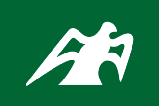 The green flag charged with white city emblem. The flag proportion are 2:3.