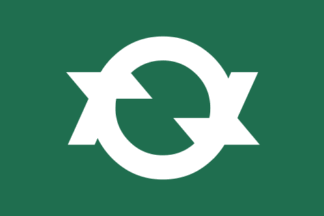 flag law. The green flag has a white city emblem in the center. The city emblem