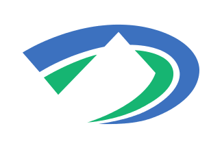 The white flag has a blue and a green two color town emblem in the center.