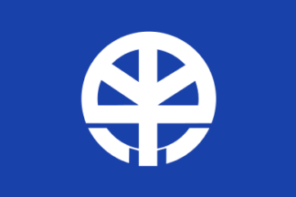The flag of former town of Inatsuki was blue with mark. The town is now, from