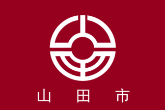 The flag of former city of Yamada was red with mark. The town is now, from