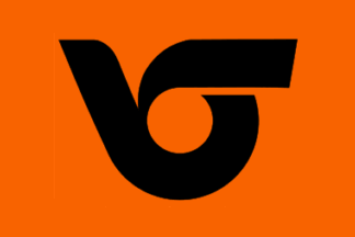The orange flag has a black city emblem in the center.