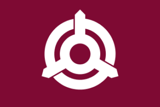 The flag of the town of Kunitomi is maroon with mark.