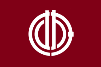 The flag of former town of Gusukube was maroon with mark. The town is now, from