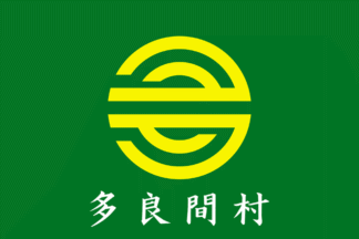 The village emblem was adopted on Apr 22nd 1973 but there is no flag law. The green flag has a yellow village emblem in the center. and the kanji name in white horizontally at the bottom.