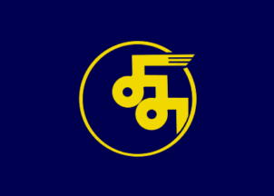 The flag of village of Yomitan is blue with mark.