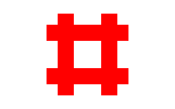 A white flag, 5:8, with a centred red well curb, its height three quarters of