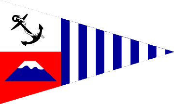 Keywords: japan | yachting burgee: japan | burgee: japan yachting clubs | triangle: 2 | sun: red | mountain | anchor: fouled | letter: w |