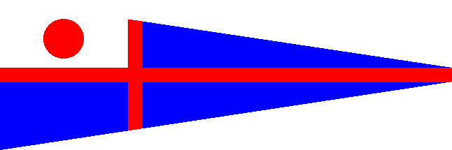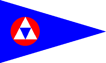 Blue pennant with a red disc including a white inscribed triangle pointing upwards, itself including another 'inscribed' triangle pointing downwards. Ivan Sache, 5 August 2000