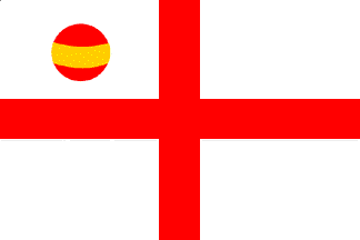 (~1:3) trapezoidal blue flag divided by a red cross and with a white canton