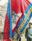 ...both of which sound like pretty official occasions. At first glance I thought these were red-blue bicolors, but a more careful look revealed a small corner of the Angkor Wat in the top red field, making it a very large KH national flag, only with the addition of lettering. I can't read it, obviously, but it doesn't seem to be the country name or national motto.