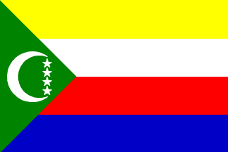 Keywords: comoros | star: 5 points (white on green) | star: 5 points (green) | star: 5 points (fimbriated) | islam | stars: 4 | stars: line | law | crescent: points to fly (white) | error |