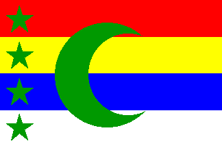 - The national emblem is Red, Yellow, Blue, White, four stars and a green crescent.
