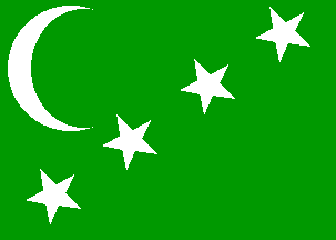 green with a white crescent placed along the hoist and four white stars