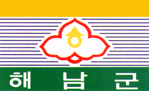 1. Camellia, the flower of Haenam-gun, is arranged with red color in the middle of the flag and the first letter of Haenam stands for the flag or Haenam-gun symbolically in it.