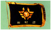 The blue color symbolizes the sea and the hope of the people. The flag also features Korean letters representing the county people's cooperation and Youngduk Taegu (Bamboo Crabs), one of the most famous local specialties.
