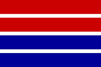 and blue with three white horizontal stripes dividing it into four equilateral fields.