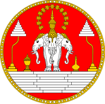 Editorial Note: The above is one rendition of the Royal flag and arms of Laos. The current arms are located at: http://www.columbia.edu/~rs392/laos_soulivong.html