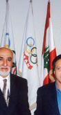 "The President of the Lebanese Athletic Abdullah Shihab, the Ministry of Youth and Sports, the Lebanese Olympic Committee to help his federation, said that the Russian sent Jean-Claude bond and the Guesser and Greta Tslakian to Singapore for three months of training under the supervision of coach Ralph Mcbhani. Shihab's statement came during a press conference held at the headquarters of the club Lebanese Automobile and Tourism spoke of the completion bond hero who won the gold medal of Lebanon in the high jump competition at the 14th Asian sports"I don't know whether the flag in the photo is that of the Ministry of Youth and Sports or of the Lebanese Athletic (Society?) All that can be seen is that it contains a red/green seal with Myron's famous statue of the discus thrower.