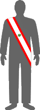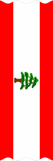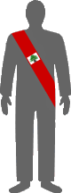 A photo of Lebanese president Michel Suleiman (2008-) shows him wearing the presidential sash. Oddly enough it is not a more-or-less faithful interpretation on the national flag, but rather a solid red band with a white rectangle containing the cedar. (One wonders if this might not be the relic of the pattern of some long-obsolete presidential standard?) The red is slightly darker than normal, and the cedar has a black – or very dark brown – trunk and branches. Presidential sashes do not ordinarily seem to be a custom in the Middle East; it must be the French influence.