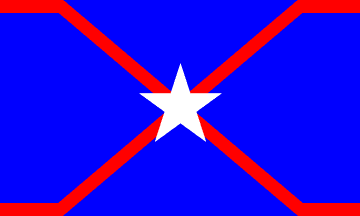 The house flag is obviously derived from that of Van Nievelt, Goudriaan (archivexillum): blue field bearing a thin red saltire-with-serifs and a white five-pointed star in the centre.