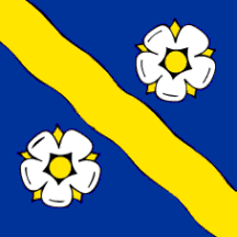gold rose in each azure field. The golden strip symbolises the site of Gamprin