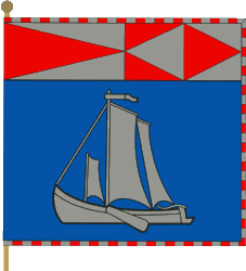 Rusne (Silute District) - on blue field a silver sailboat