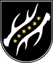 Kazlu Ruda - on yellow field the arms of Kazlu Ruda: on black