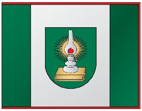 (green-white-green 1-3-1) the arms of Barzdai: on a book glowing