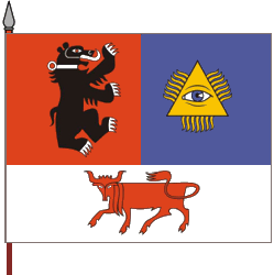 is above, but in ratio of 4:5. The other one is the flag of the City Administration (?) and is white