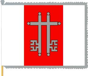 1-2-1) two silver keys joined cross-like. Flag proportions 10:13,