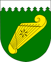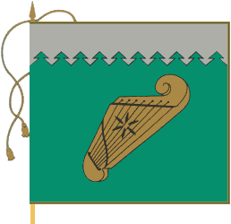 The coat of arms depicts the golden kankles on the upper field of