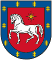 Utena county - on a red field a silver horse, above a golden