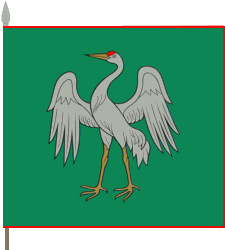 stripe, finial is a silver tip, staff is dark grey. The crane