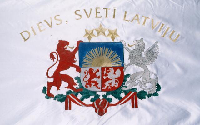 [really - middle Coat of Arms] of Latvia in centre. Above