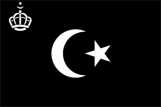 In Flags of The World 1965 by Barraclough [bar65], page 215, a different version is shown with the crescent and star being much smaller. The crown is of a different (although quite similar) style. Of the Lybian National flag 1951-1969, it is written: