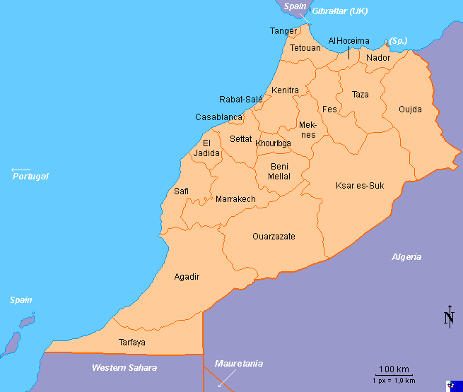 Copyright: FOTW Morocco (1968-1976) map António Martins and boundaries’ data by Michael Smuda. If you wish to reuse them on your website, read our copyright rules.