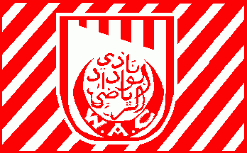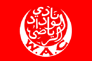 I just found one red flag, divided by eleven white bends sinister. The flag had a thin red bordure. In the centre is the clubs logo in inverted colours, i.e. red Arabic letters on a white background. Below is a lying red crescent with the inscription "W.A.C.". The whole is placed upon a white embattled tower. The pinnacles are ordered alongside a descending line. Klaus-Michael Schneider, 17 Apr 2014