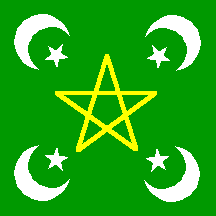 Keywords: crescents: 4 (white) | crescent: points to center | crescent and star (white) | pentagram (yellow) |