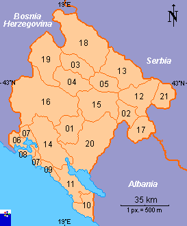 Legend key: 01 Danilovgrad 02 Andrijevica 03 Žabljak 04 Šavnik 05 Mojkovac 06 Herceg Novi 07 Kotor 08 Tivat 09 Budva 10 Ulcinj |