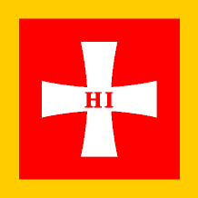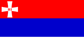 the theocratic state that had existed before the secularization. It was a red flag with a yellow border and the cross inside - the "Cross banner" as it was very well known. Prince Danilo made a tiny amendment to the flag, adding his golden cypher Д. I. in the cross' center.
