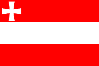 In 1880, the civil ensign was a flag horizontally divided red-white-red with the cross from the war flag set in canton.