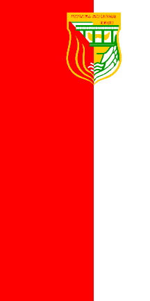 Self-Government website (page no longer online), is vertical, in proportion 2:1, vertically divided red-white (~2:1) with the municipal emblem in the upper part.