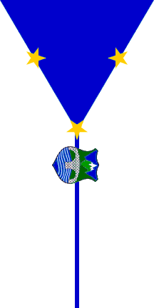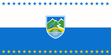 Rostuša already included blue and white colours and three yellow stars. The coat of arms of the new municipality alludes to the main elements of the local landscape, mountains, rivers and lake. The two rivers might represent the two former municipalities of Mavrovo and