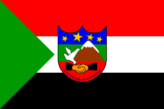 Self-Government website (page no longer online), is in proportions 2:3, horizontally divided red-white-black with a green triangle placed along the hoist, and the municipal emblem in the
