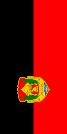 Self-Government website (page no longer online), is in proportion 1:2, horizontally divided black-red, with the municipal emblem shifted to the hoist.