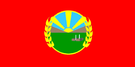 The flag of Zrnovci (municipal website) is red with the municipal emblem in the middle.